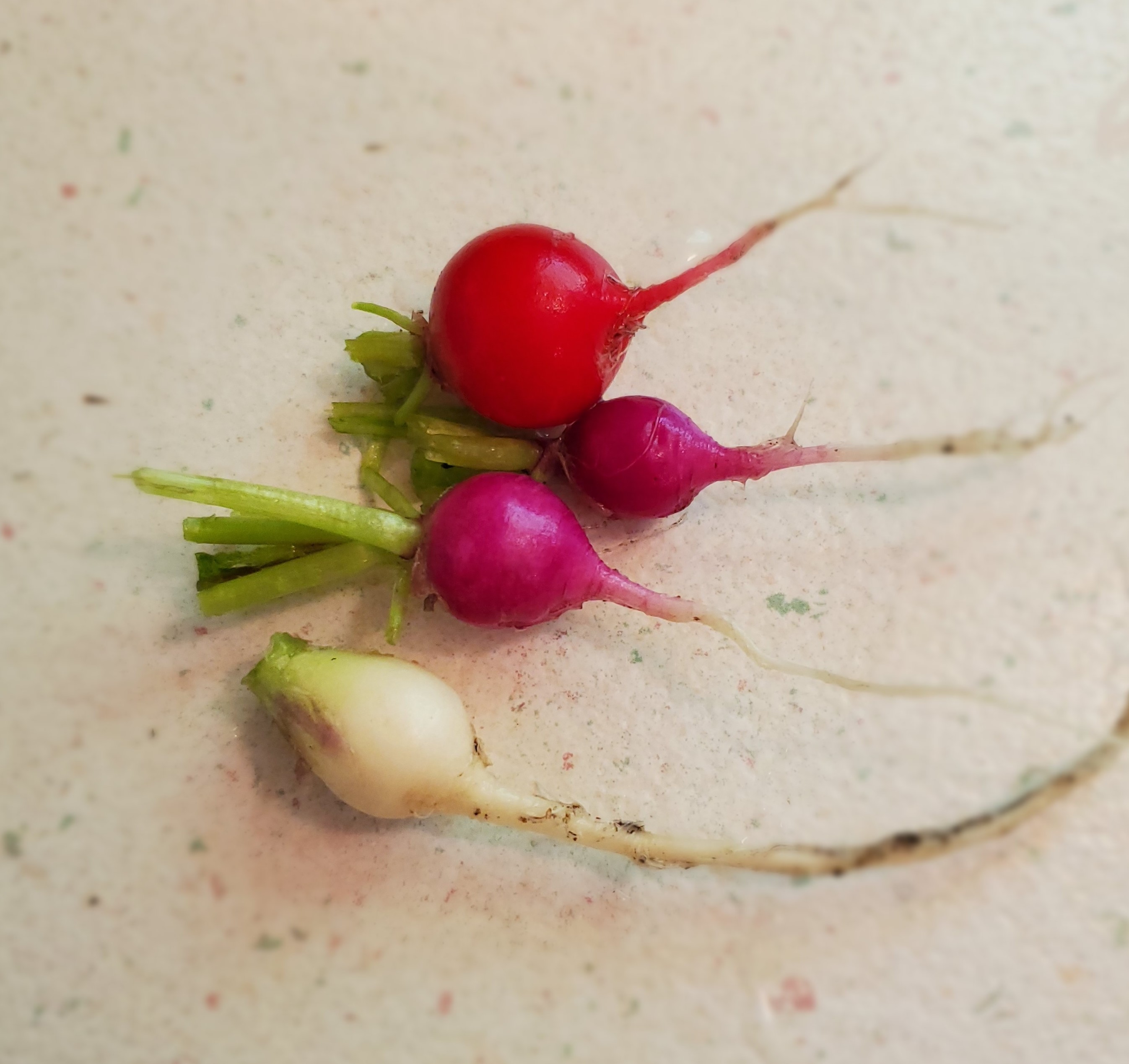 Garden excitement #2: I got my first harvest from the Greenstalk planter! Look at my Easter Egg radishes:
