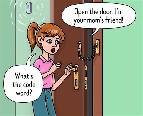 In my family, if I wasn’t present, or if I was unexpectedly unable to get to them, the instructions to my children were: before you open the door to a knock or get into a car with someone, even if it was a family friend, that person needed to say the Code Word. I even tested them one time by sending a friend to our door — who then thoroughly chastised them when they opened the door without asking “What’s the code word?” (Yes, there was a family retraining session that evening!)