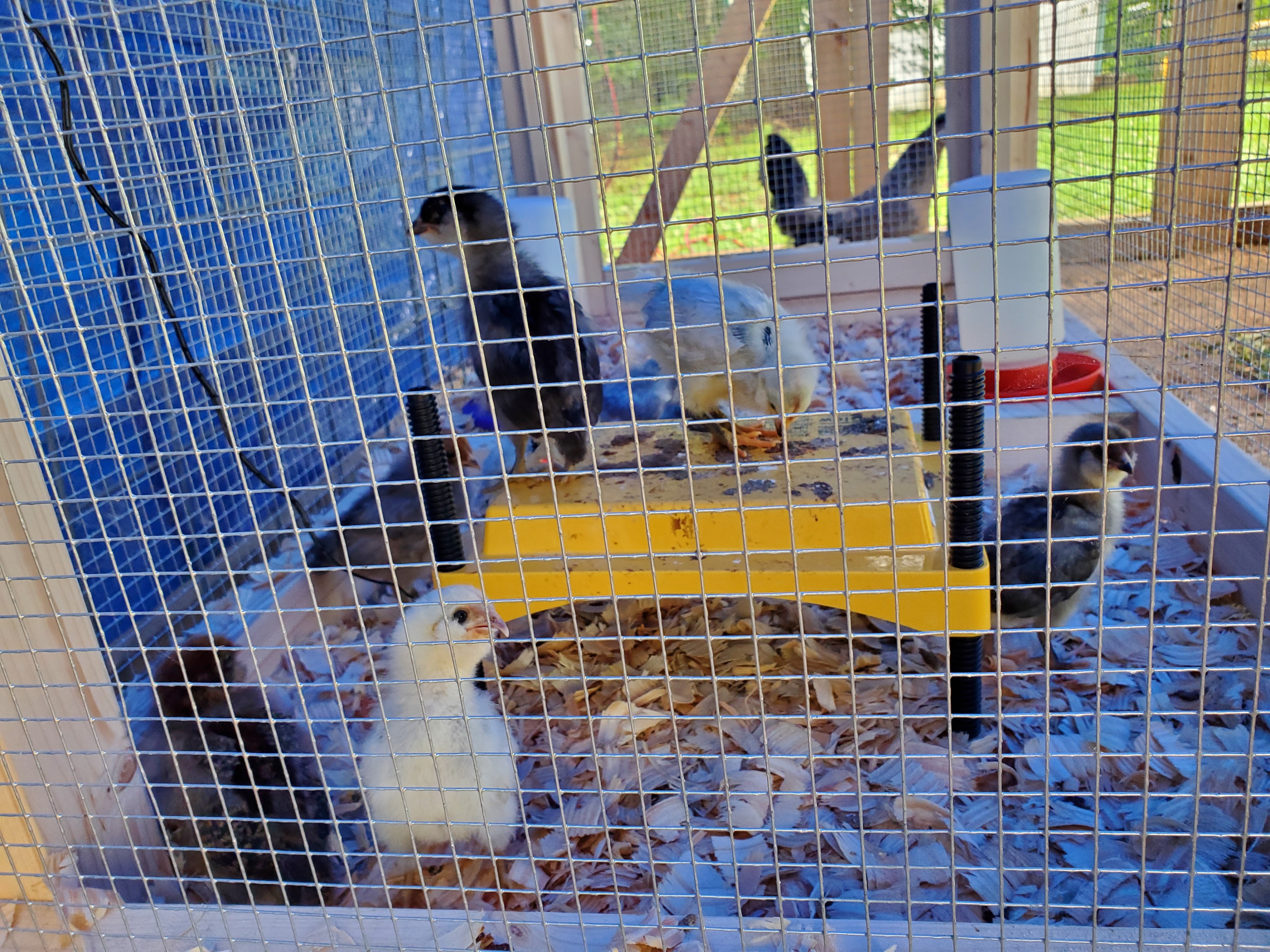 I’m sure it was scary with all the new night noises but they came through just fine. Until this morning, when it started raining. Apparently the sound of the rain on the tarp that covers the run was just too much. It was the first time they’ve heard rain and it was loud. I could hear the chick who has proven to be a drama queen screaming from all the way inside the house. (It was the same one who screamed bloody murder when she jumped out of the tub the other day.) That chick has got some lungs on her!