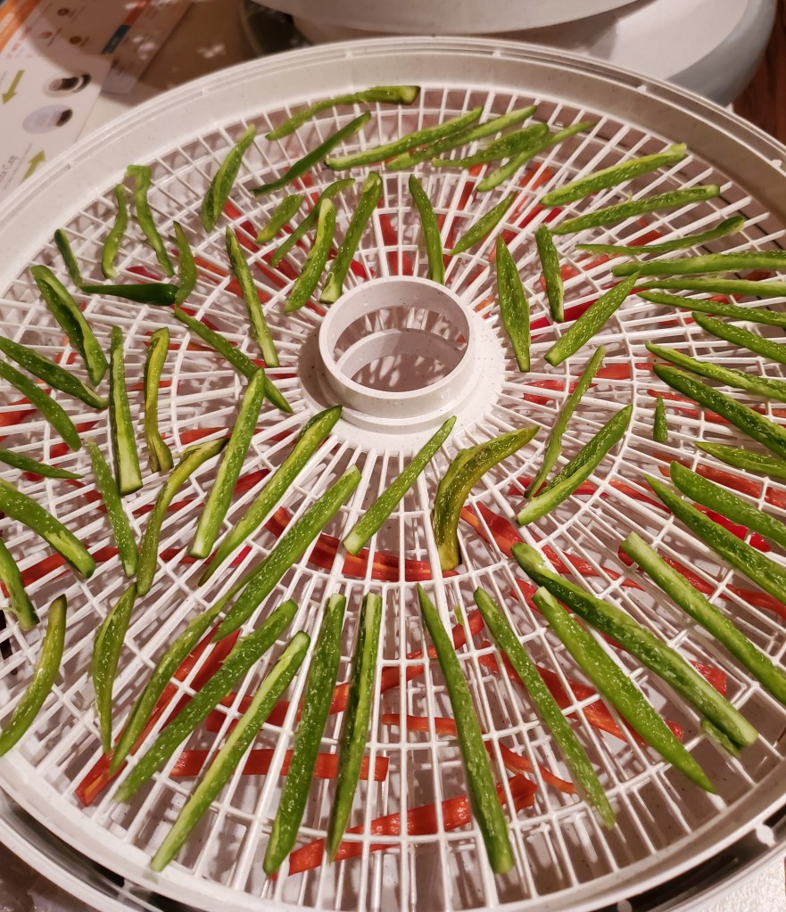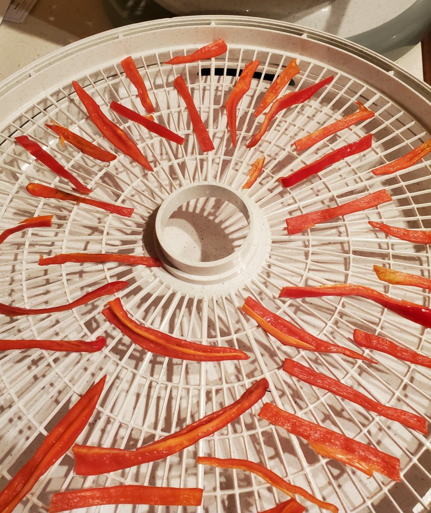 Tonight I sliced them up and put them in the dehydrator. I ended up with: