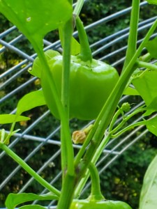 The Greenstalk was disassembled and moved into the greenhouse, too. The top two layers are still working on Mini Bell Peppers, a last Cowbell pepper, and several Serrano peppers. We have a couple more weeks of 90 degree weather which should be just about right to finish these off.