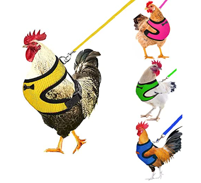 “What a good idea for transferring the chickens from the coop in the back to the garden in the front!” I thought. Much easier than picking one chicken up, carrying it to the fenced area, walking back to get another one, repeat, repeat, repeat. So, I bought a pack of chicken harnesses and leashes.
