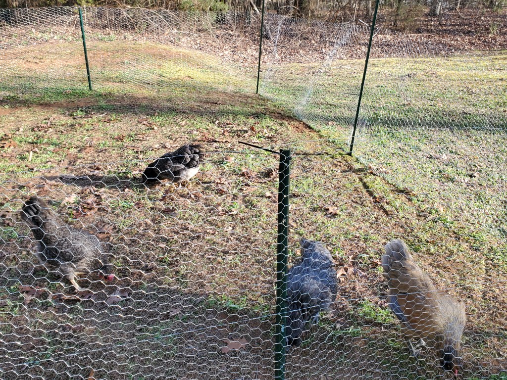 Well, those chickens were having nothing to do with them. Not one bit. They would either plop themselves down on the ground and not budge or would try to back out of them (sometimes successfully).