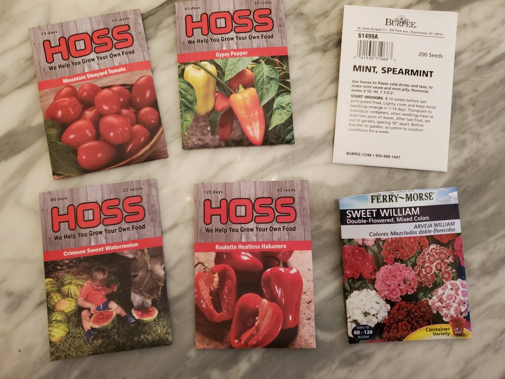 Today, I planted watermelon, habanero pepper, gypsy pepper, spearmint, Sweet William, and tomato seeds.