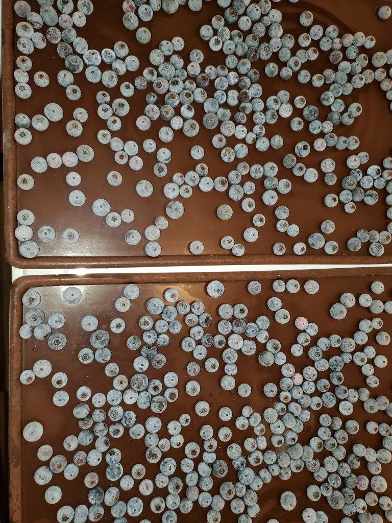 After washing and drying them, I set aside enough for a treat, and I froze the rest on silicone trays. This keeps them from freezing as a block, making them easy to use throughout the year.