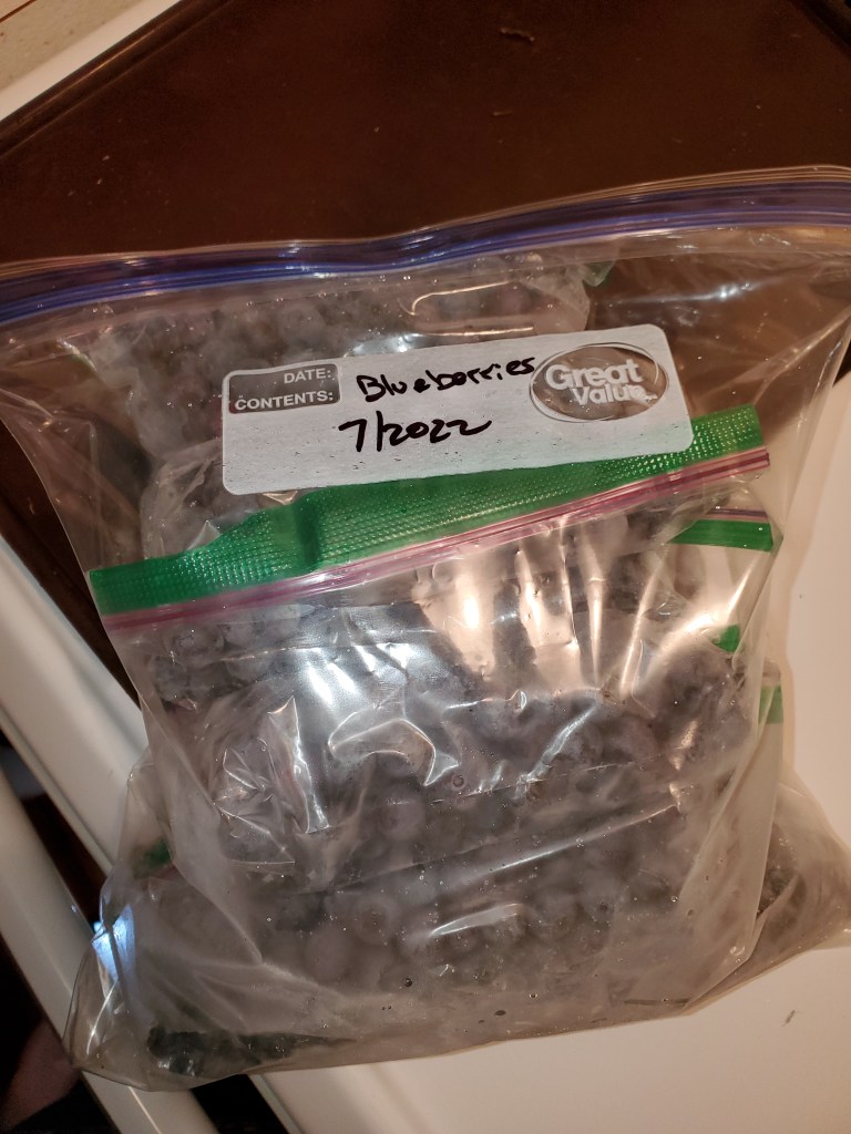 After they were in the freezer for a couple of hours, I quickly put 1 cup each into snack-size baggies. Then I put those small bags into a gallon-size baggie and put them back into the freezer to use throughout the next year.
