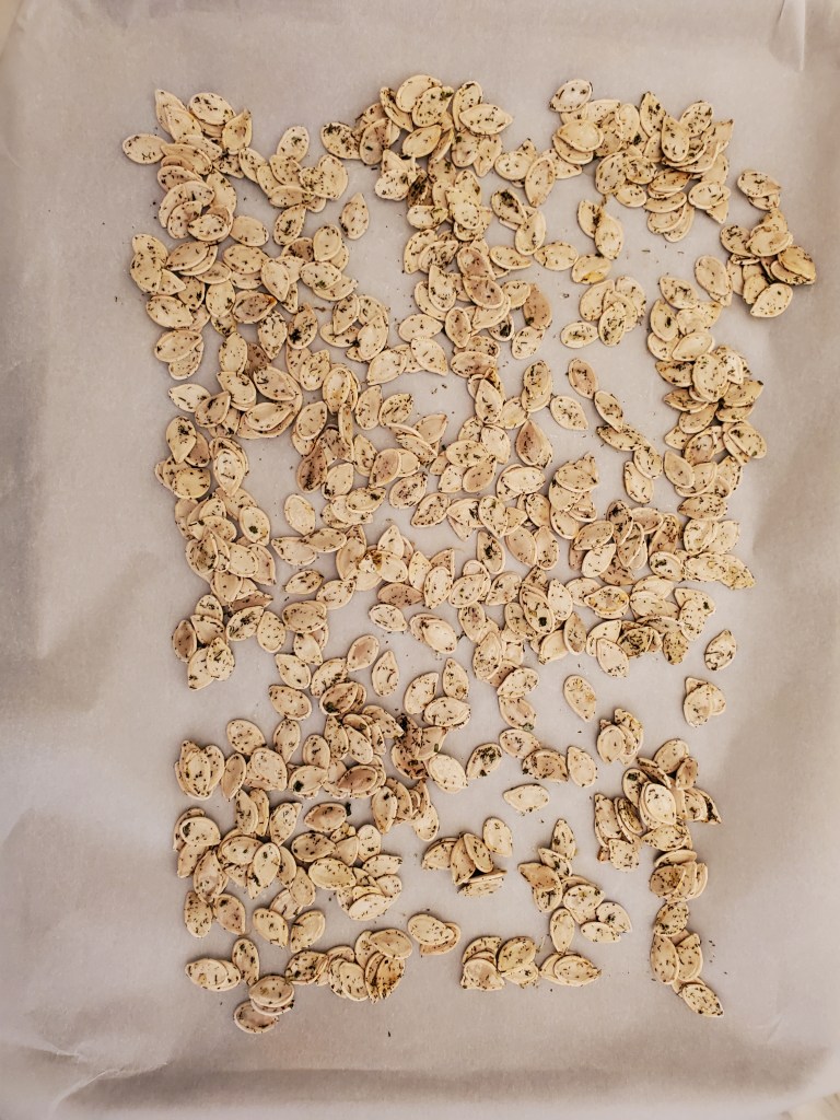 I spread out the pumpkin seed prep over three evenings but you really could do it all at once.