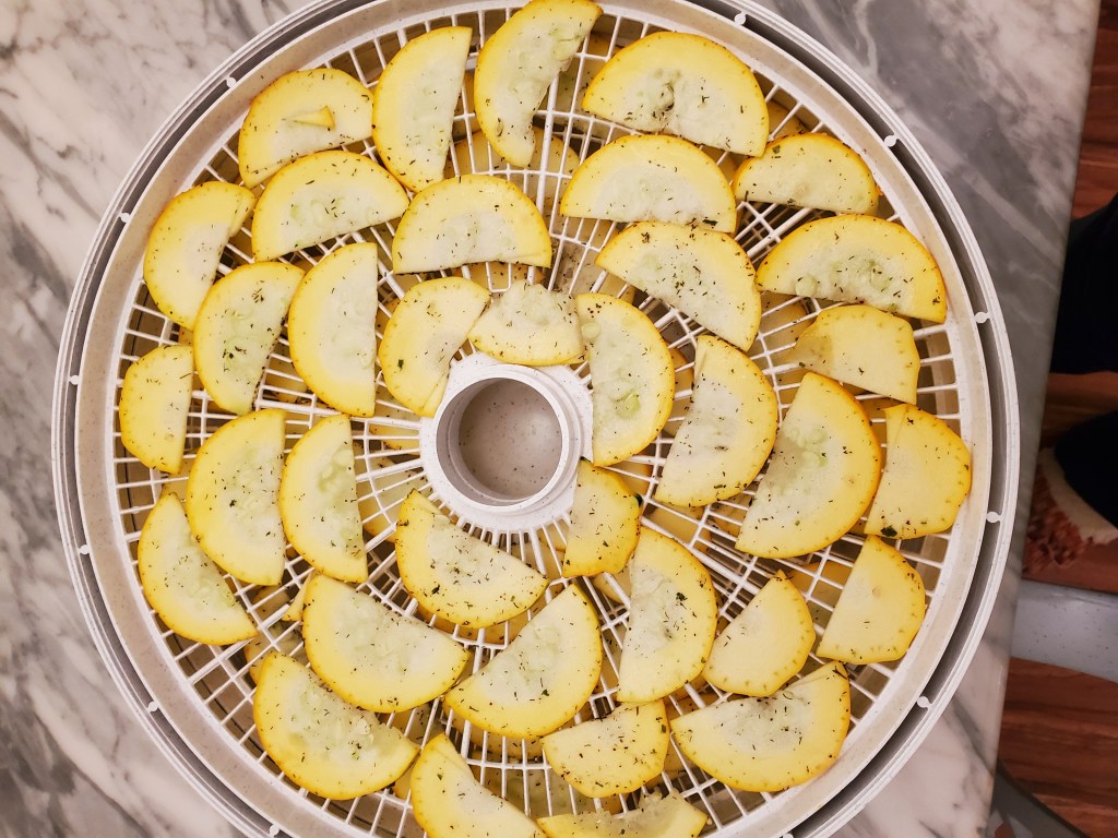 For example, tonight I finished roasting pumpkin seeds and also sliced zucchini to make chips in the dehydrator.