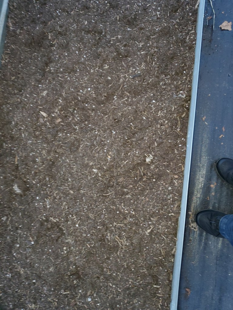 As Jessica and I were clearing the area to be covered with landscape material, we were surprised by a baby snake. Thinking it was a copperhead (it’s hatching season for them), it was dispatched. (Yes, there was squealing involved.)