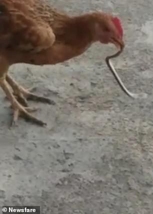 We tossed the snake body into the chicken run and the fun began! The lucky hen to grab the snake had to keep on the run or the others would steal it from her. It was quite humorous to watch.