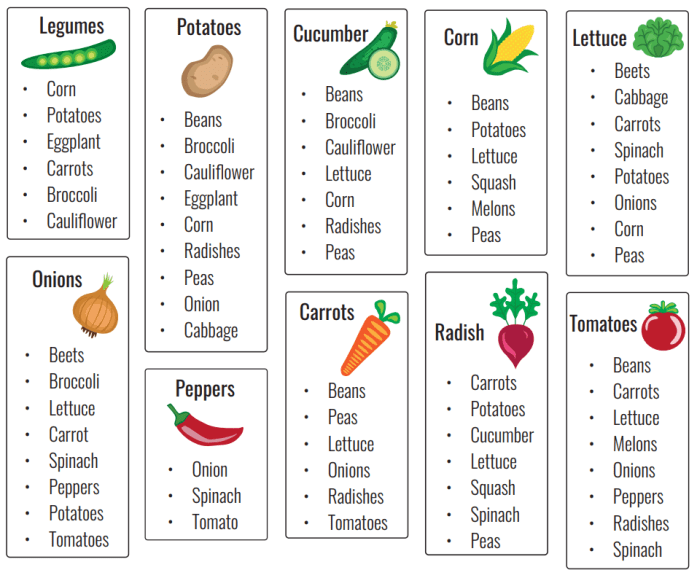 I’m always having to look up this information so it’s time to put it where I can find it! Here are a couple of charts of which vegetables TO plant together and which NOT TO plant together in the garden. The art of companion planting is certainly more in-depth than these charts I found on-line but they are a good starting point.