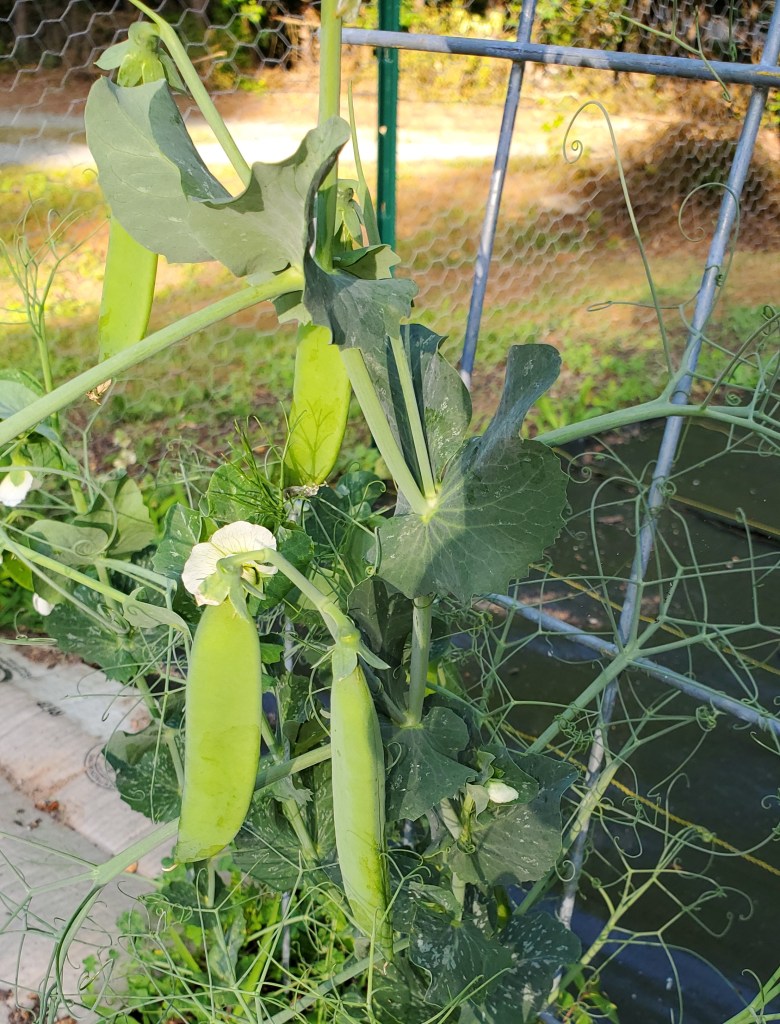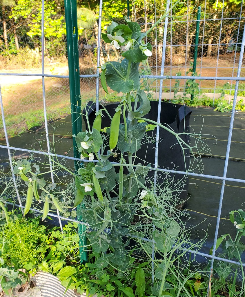 Despite all the challenges this garden bed has had this season, I have pea pods. How exciting! They are not filled with peas yet but they sure are welcome sight.