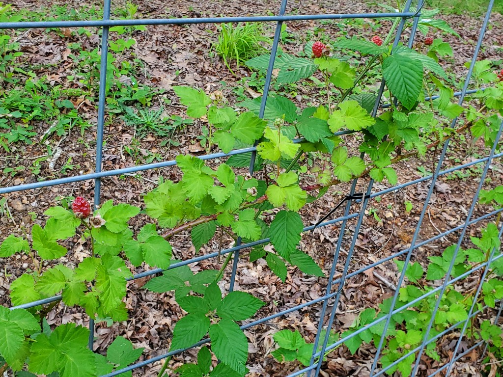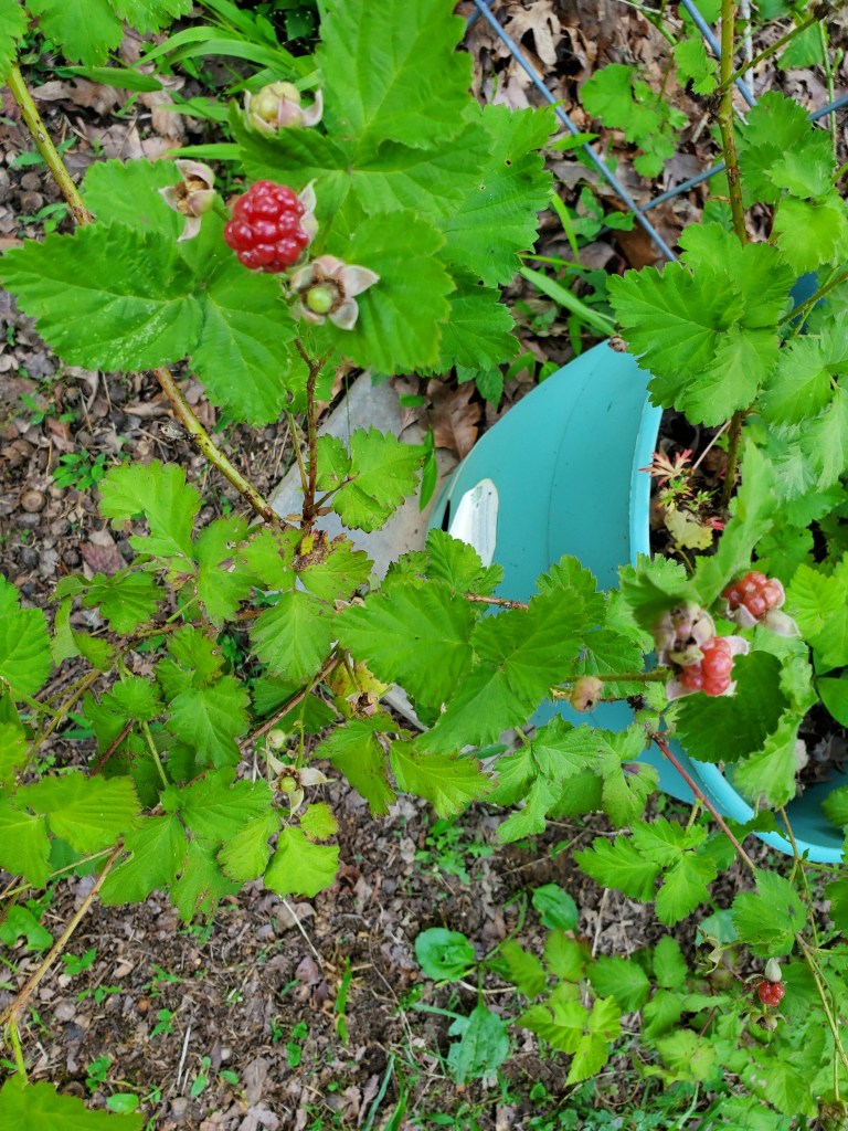 Actually, this fall I plan to move them to a different area (a benefit of container gardening). Currently, they are on the edge of my property. The neighbor’s ground has blackberry suckers that, while they don’t mind if we mow them down, have become a lot of work to keep under control. Boysenberries cannot have blackberries (or raspberries) nearby so we will just move the boysenberries until we can eradicate the blackberries.