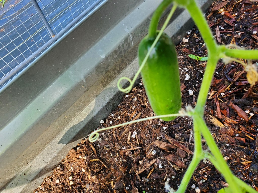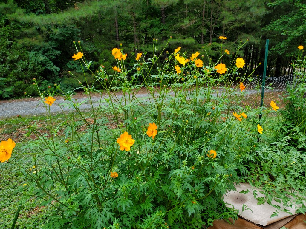 It was exciting to find the spaghetti squash fruiting, tomatoes on the tomato plants, and cosmos blooming. Oh, and a couple of cucumbers that I didn’t remember planting: