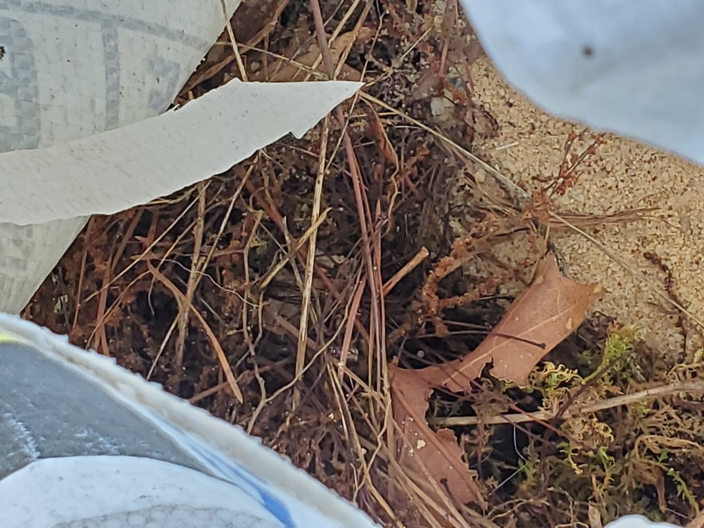 They are cute little birds and I enjoy listening to them. I admit I screamed quite loudly when I looked in the bag and one of them flew out! Both the male and female tend the nest and it’s been interesting to watch as food is shuttled in. The nest is domed with a side entrance so I can’t see if there are eggs or hatchlings in it. We’ll just leave it alone. Apparently, the male wren removes the nest when they are done. Hmm, I’m not used to that. What a pleasant thought.
