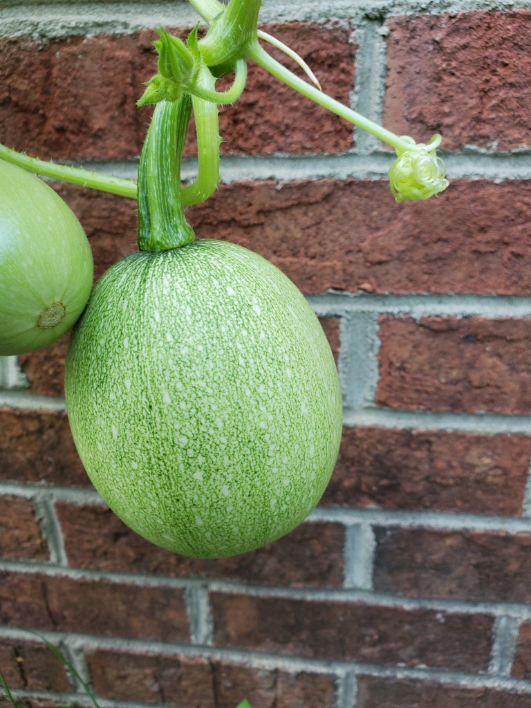 Things are moving along at a fast clip in the garden. When I showed you some of the garden developments earlier this week, the spaghetti squashes were 2″ long. Today they are 5″ long! In just four days!