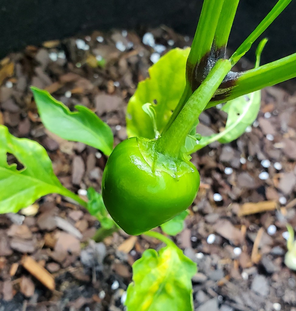 A few days ago, the Time Bomb pepper plants had flowers, but today I discovered a little pepper! I am looking forward to trying these. They apparently have a heat index between a bell pepper and a jalapeno pepper.