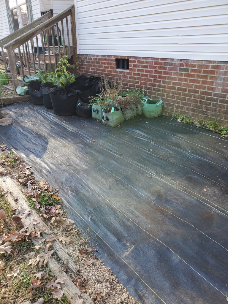 I also cleaned out some plants that finally bit the dust after the frosts we’ve had over the past couple of weeks. I cleared out the weedy grasses that had invaded my elderberry bushes and fig tree. The fig tree received a bit of a prune also. Then I top dressed those pots with worm compost.