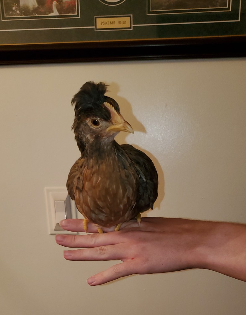 What will happen? Who will prevail? This occurred with our last batch of chicks, too. I mentioned that the “gray one looks like a storm cloud.” Oscar calls her Cloudy and I call her Stormy. So, I’m betting that’s how this will work out – each will call her what we want to call her and mock glare at each other.