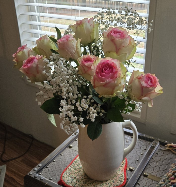 I was delighted when a friend brightened my month with flowers. They added a spot of “pretty” in my home for a week or so.