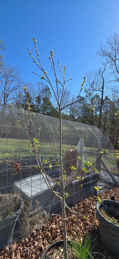 Not only that but the apple trees, elderberry bushes, and fig all have leaves on them.