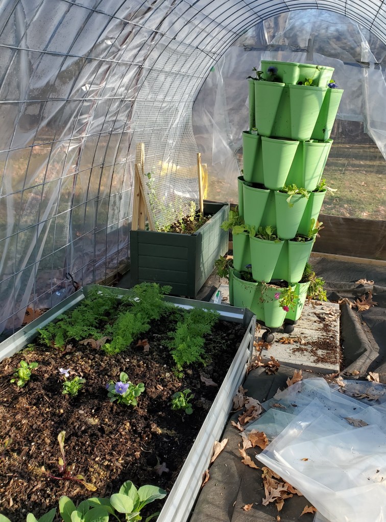 It just goes to show you — things don’t have to be perfect to be good enough. I could have spent thousands of dollars on a “proper” greenhouse – well actually, I don’t have thousands of dollars for a greenhouse but that’s beside the point. Instead of spending all that money, I used what I had and what I have is good enough that I am harvesting vegetables in January!