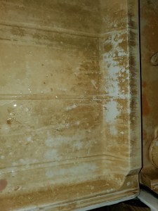 In THIS post from June, I reported that I had been trying to scrub the nastiness off my dishwasher without success and might have to replace it. I mean, it kind of turned my stomach to look at it even though I knew it wasn’t dirty, just stained.